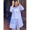 Áo Blouse trắng nữ dài tay - áo blouse bác sĩ, dược sĩ, phòng thí nghiệm