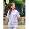 Áo điều dưỡng nam nữ có viền xanh cho thực tập sinh - áo điều dưỡng, y tá có cầu vai xanh