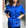 Hình chụp thật 100%Áo công nghệ xanh, áo blouse Nam nữ màu xanh dương đậm-Áo tạp vụ, nhân viên vệ sinh nhà hàng, khách sạn, bệnh việnÁo blouse xanh Nam NữÁo đồng phục điều dưỡng xanh dương đậm cổ bẻÁo...