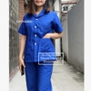 Áo đồng phục điều dưỡng xanh dương đậm cổ bẻ