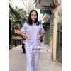Bộ blouse trắng cổ tim có viền xanh - bộ scrubs trắng cỗ chữ V kỹ thuật viên Nam nữ cộc tay