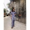 Bộ quần áo cổ tim kỹ thuật viên nữ màu Ghi Xám- bộ Scrubs bác sỹ, hộ lý, thẩm mỹ viện, spa
