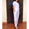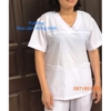 Bộ quần áo nam nữ cổ tim cho bác sĩ, y tá, điều dưỡng - bộ scrubs kỹ thuật viên màu trắng
