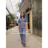 Bộ scrubs cổ tim Nữ cộc tay màu Ghi Xám - bộ quần áo cổ tim nữ cho bác sỹ, y tá, điều dưỡng, thẩm mỹ viện, spa