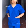 Bộ scrubs cổ tim nữ cộc tay xanh lam- đồng phục kỹ thuật viên thẩm mỹ viện, quần áo bác sĩ, điều dưỡng