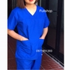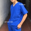 Bộ scrubs quần áo blouse cổ tim nam nữ màu xanh dương đậm - bộ đồng phục cổ tim bác sĩ, thẩm mỹ viện, spa